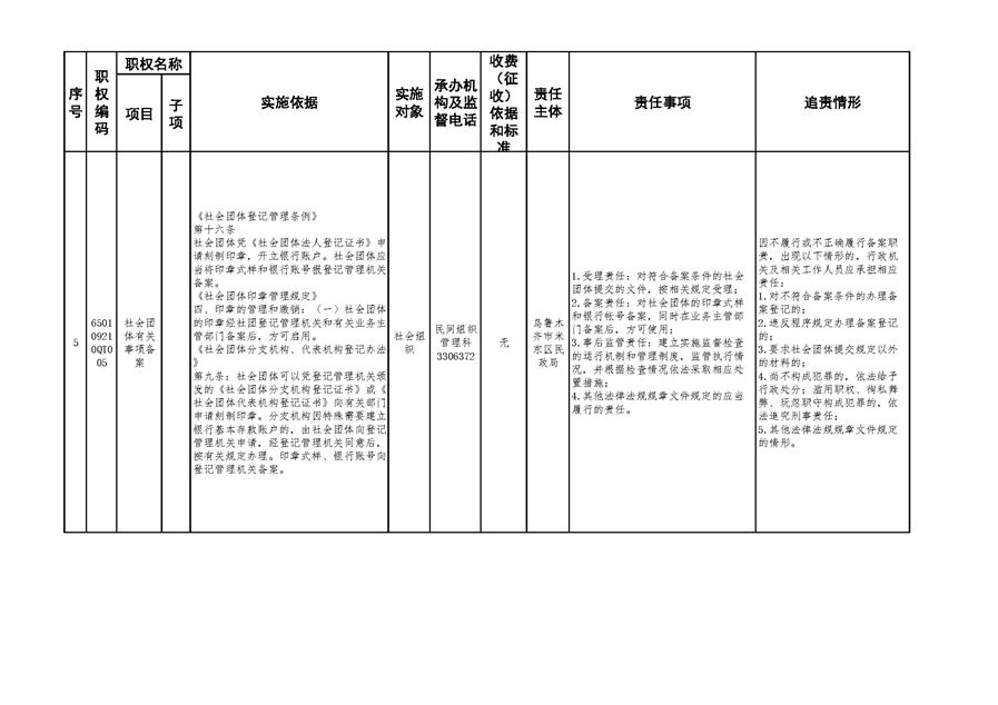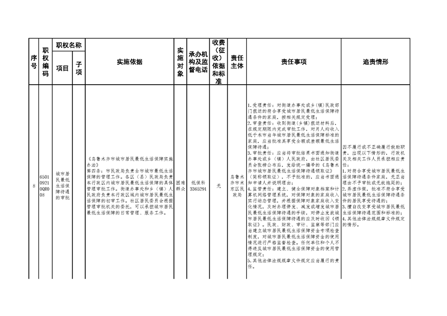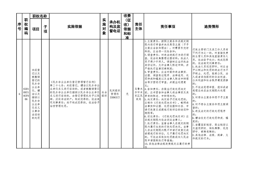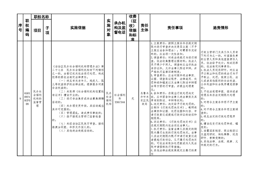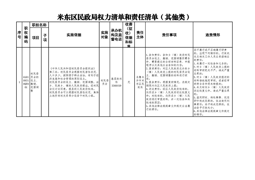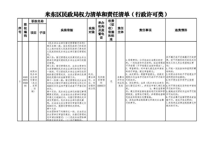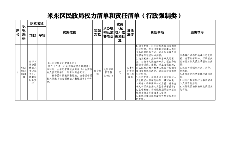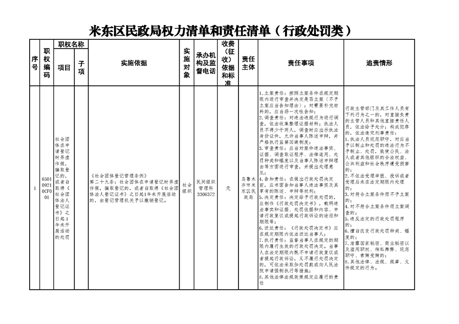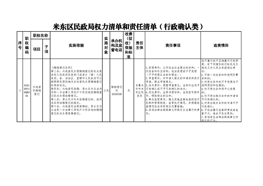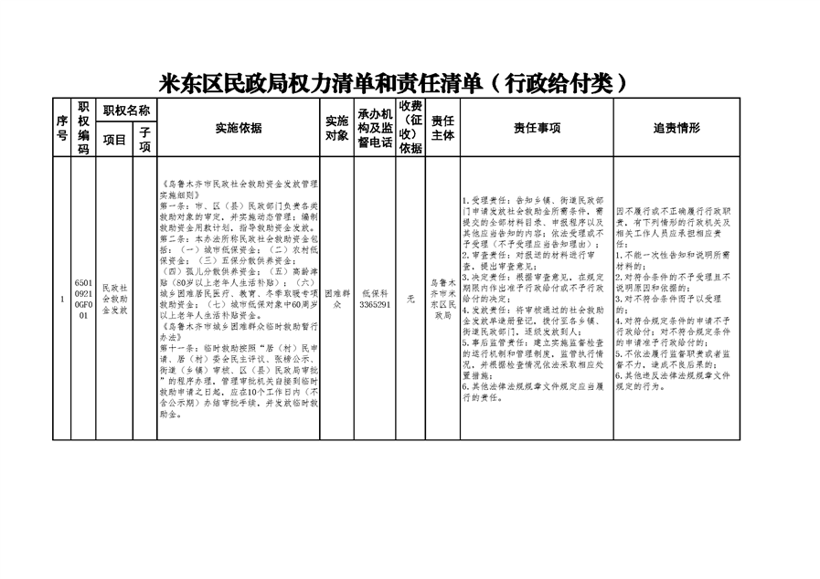 米东区民政局行政权力清单和责任清单
