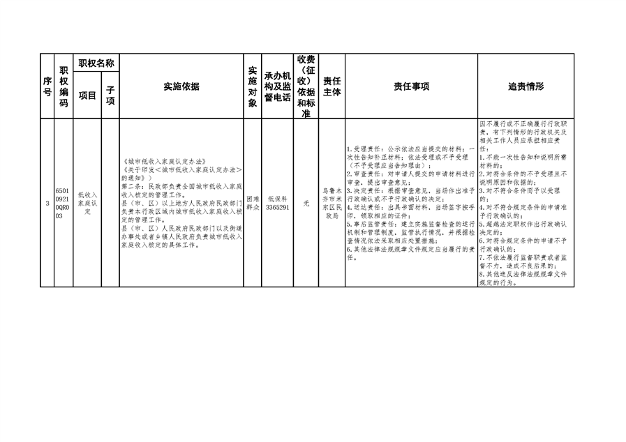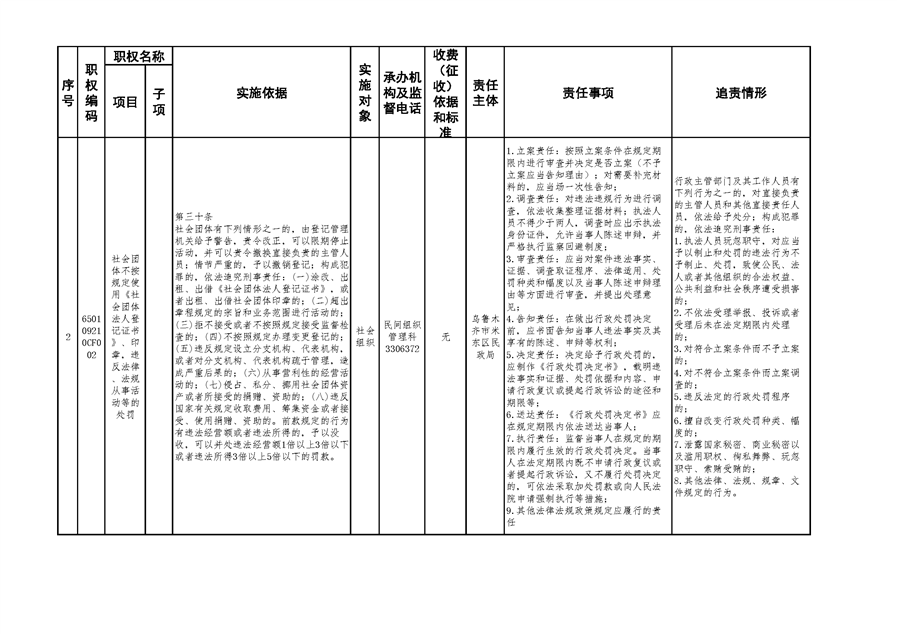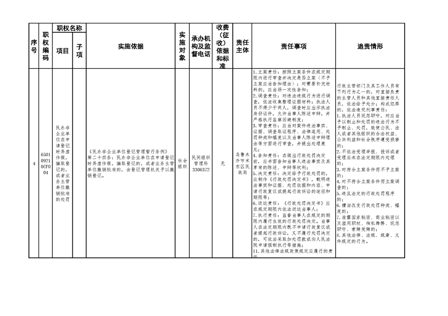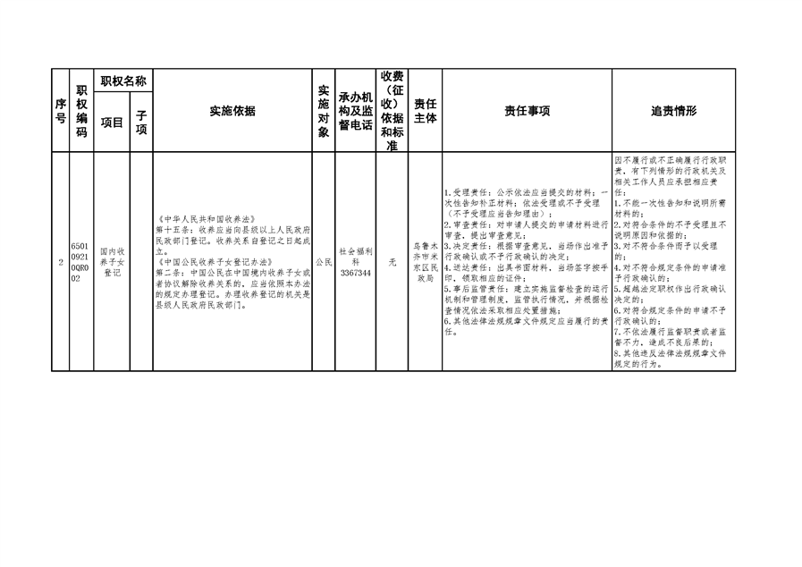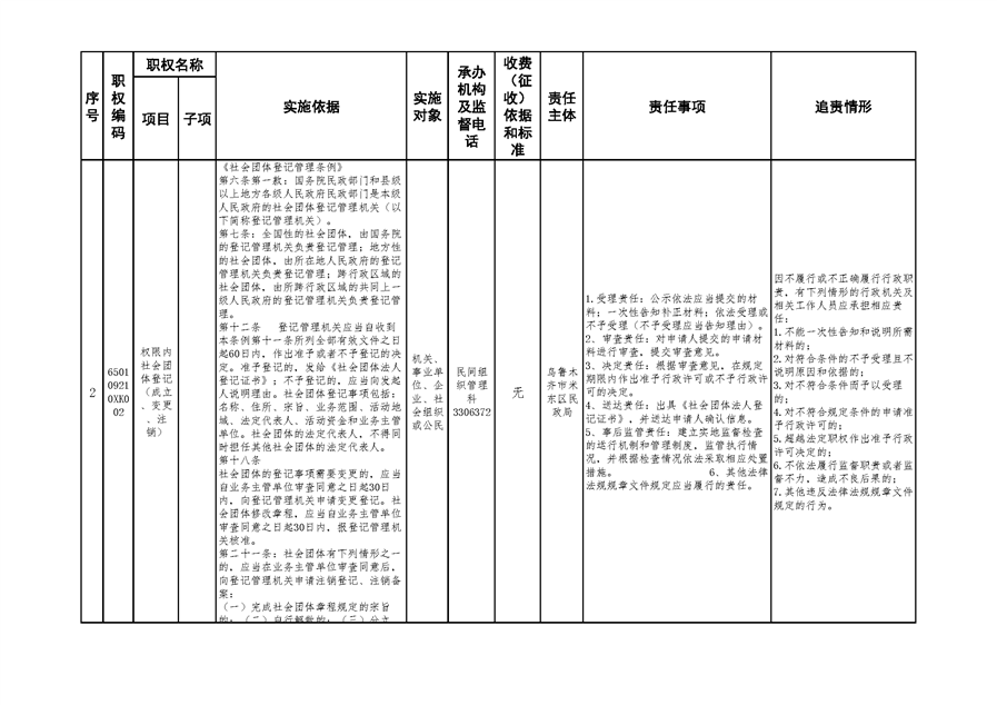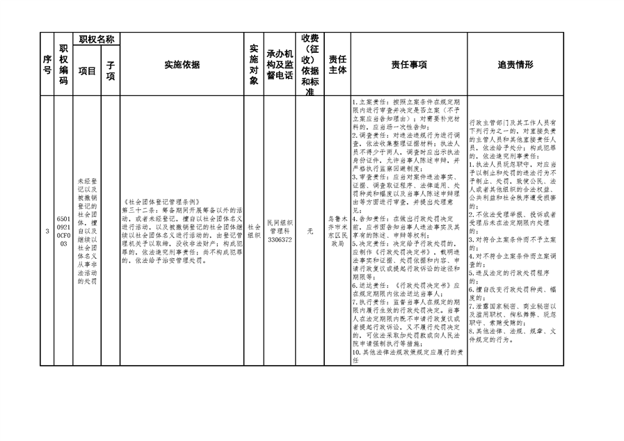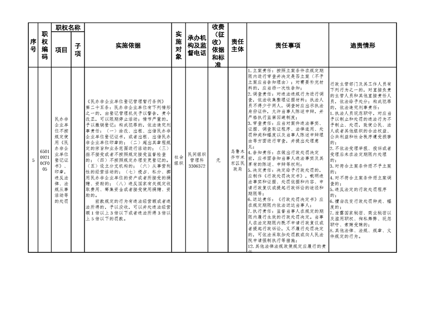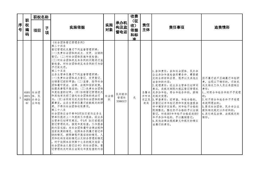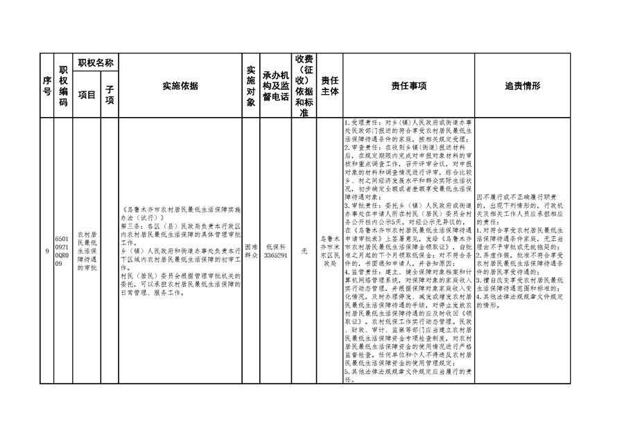 米东区民政局行政权力清单和责任清单