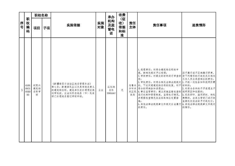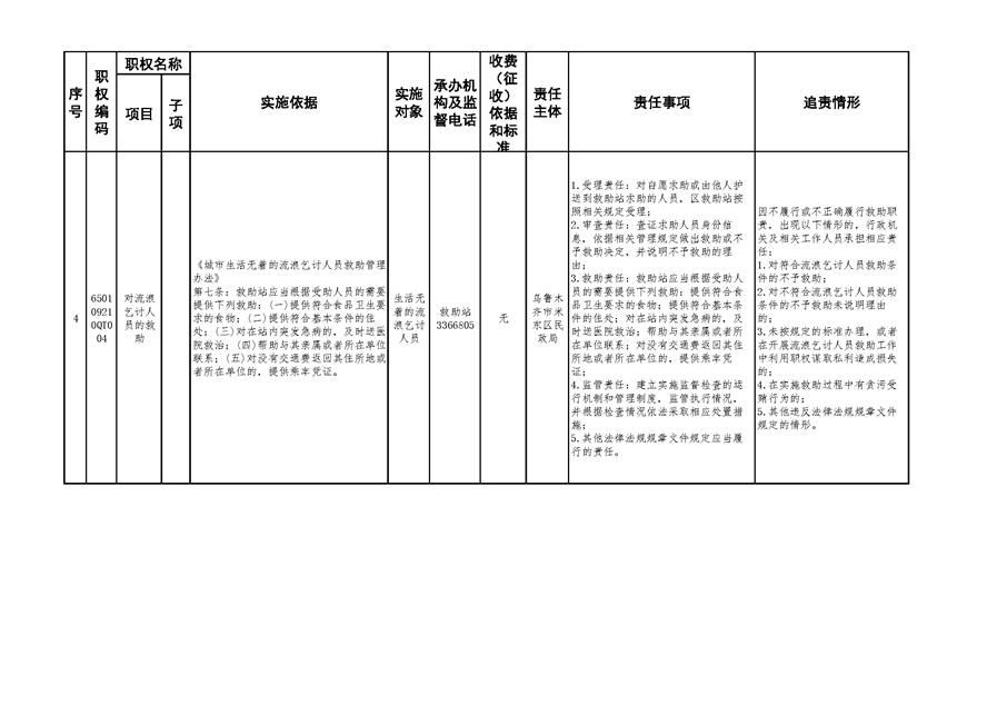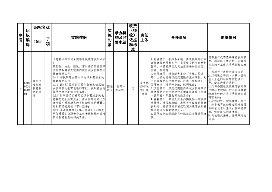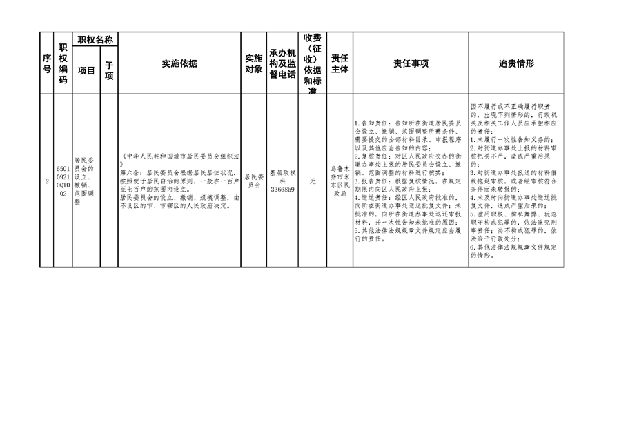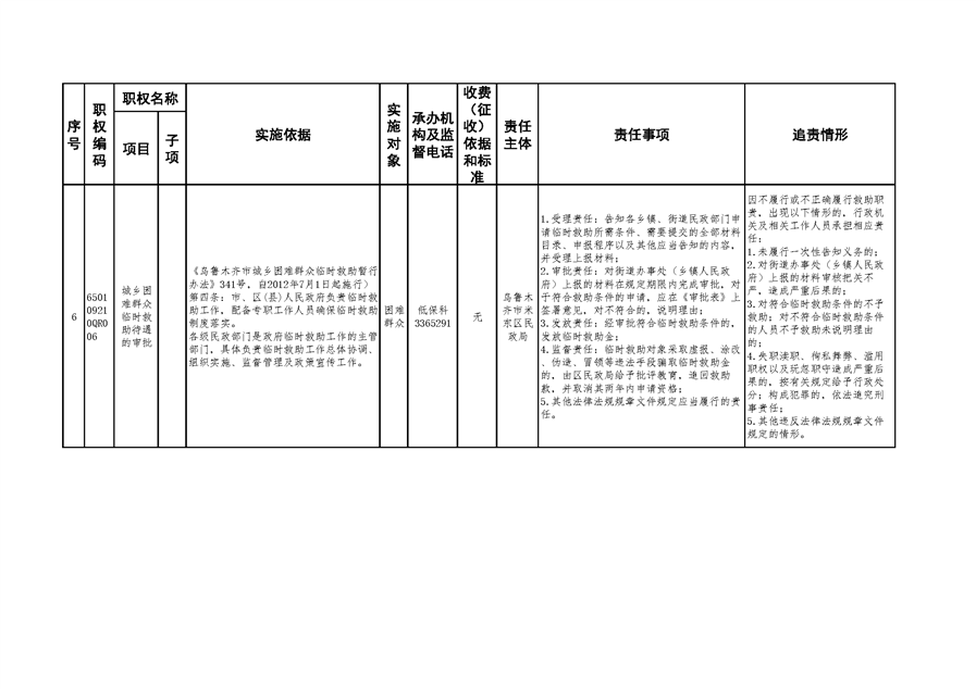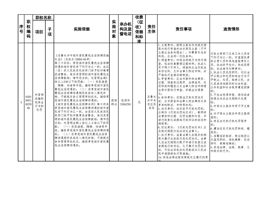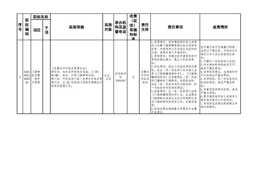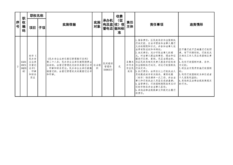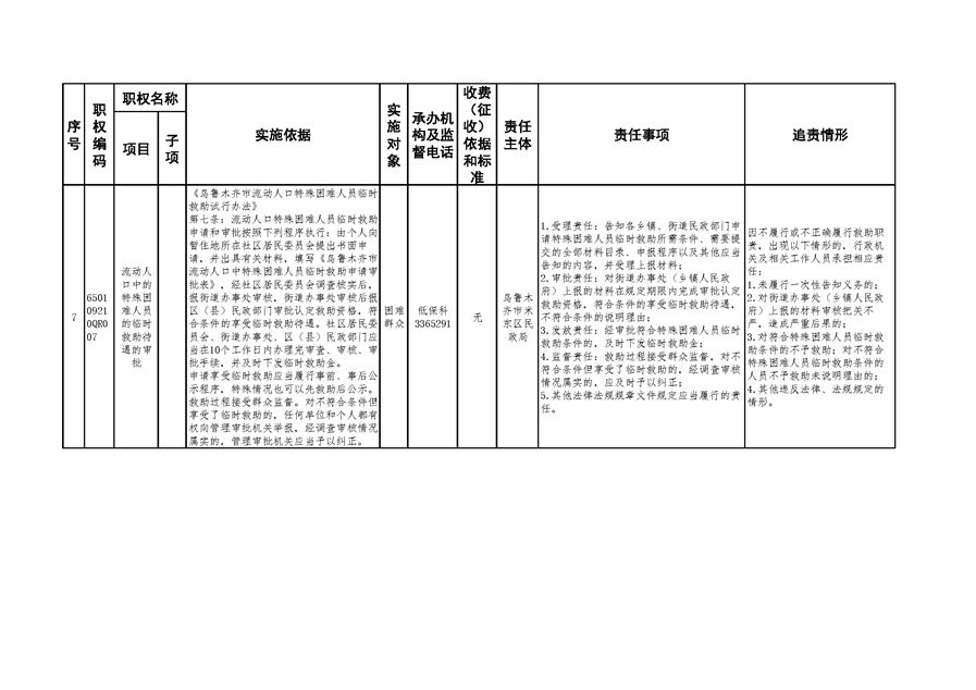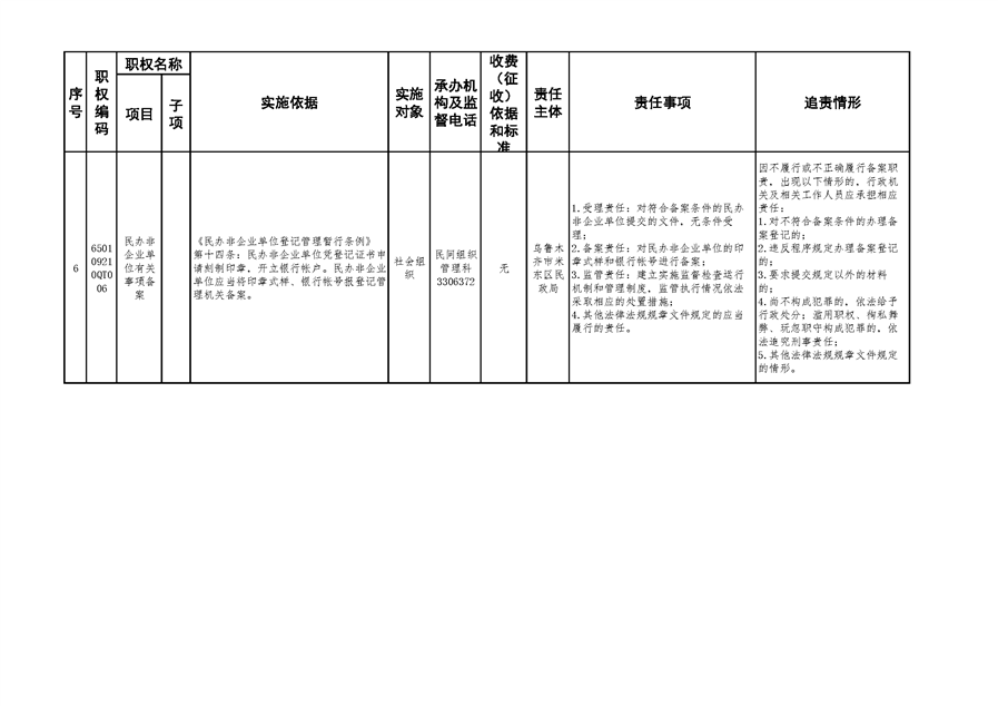 米东区民政局行政权力清单和责任清单