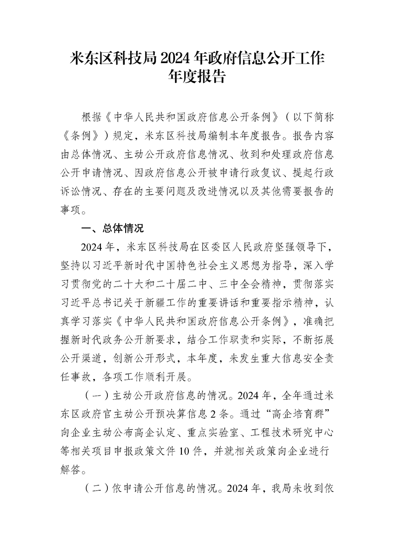 东区 科技局 2024 政府信息公开 信息公开工作 年度报告