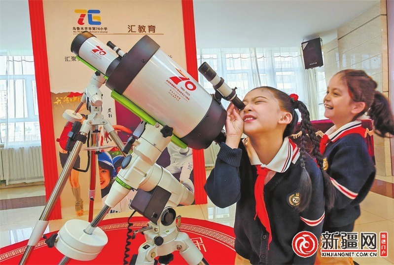 辉煌70年 奋进新征程丨中央代表团向乌鲁木齐市第76小学赠送天文望远镜