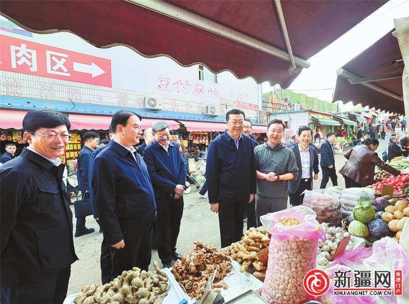 9月28日,自治区党委副书记、市委书记张柱调研检查民生保障和安全稳定工作。图为在凌庆蔬菜果品批发市场,张柱详细了解民生商品保障和购销情况。(记者陈星宇摄)
