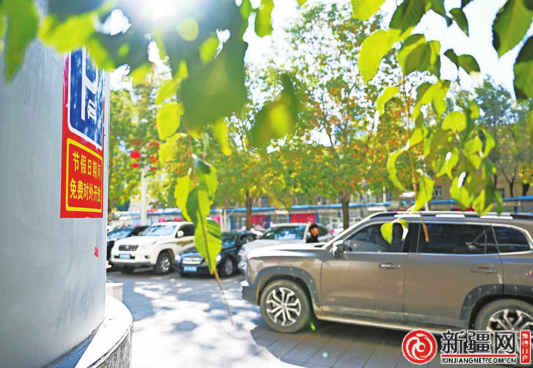 节假日期间,新疆建筑设计院停车场免费对外开放。(10月5日摄)(记者迪丽娜尔·加力肯摄)