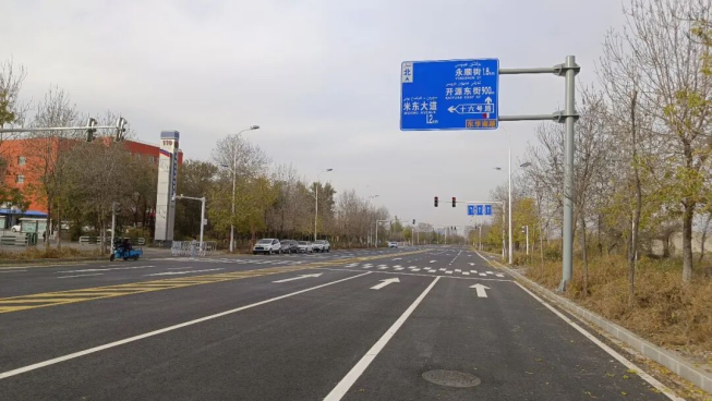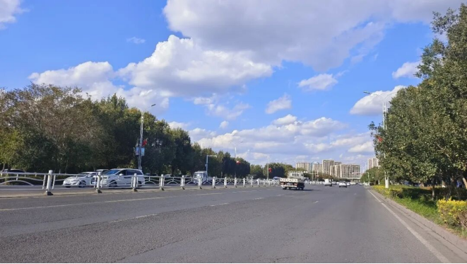 东华北路是连接水磨沟区与米东区的城市主干道,横穿水龙湾片区。过去,这条路因年久失修,路面坑洼、井盖损坏松动等问题。2023年,米东区启动东华北路(喀什东路-石化路)提升改造工程:改造后的道路全长4000米、红线宽60米,清晰划分机动车道、非机动车道与绿化带,路面平坦开阔,标识标线齐全,还新增交通标志与信号设施,更换了路灯并实施电力线杆入地工程,彻底清除了空中“蜘蛛网”。
