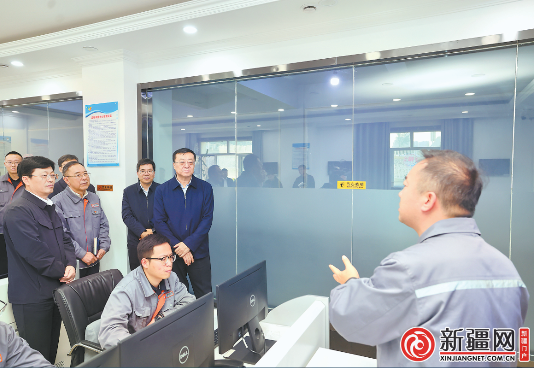 10月10日,自治区党委副书记、市委书记张柱调研供热保障工作。图为在乌鲁木齐热力(集团)第四供热公司,张柱详细了解供热控制系统运行情况。(记者陈星宇摄)