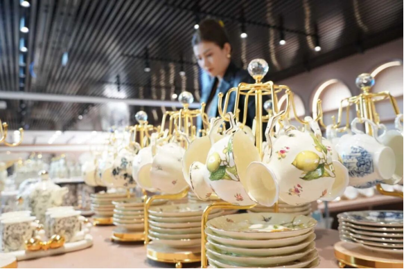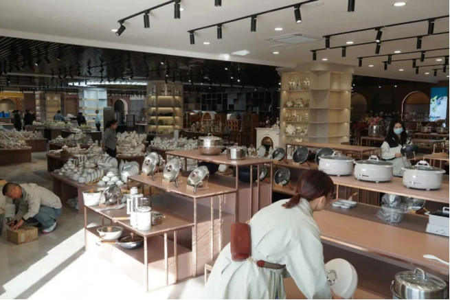 新思特销售中心也是今年入驻园区的商户,经过2个月的筹备,仓储一体的销售中心开始了试营业。据该中心负责人郑芳芳介绍,销售中心共计4000余平米,其中展厅达1000平米左右,展陈商品涵盖精品锅具、高档陶瓷、生活摆件等多种类型。