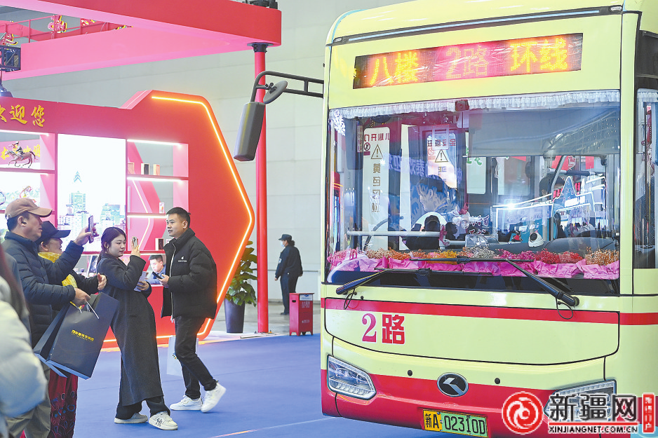 11月14日,在第十九届新疆冬博会乌鲁木齐展馆,八楼2路公交车、馕咖啡冲泡等吸引了观众观看。(记者陈岩摄)