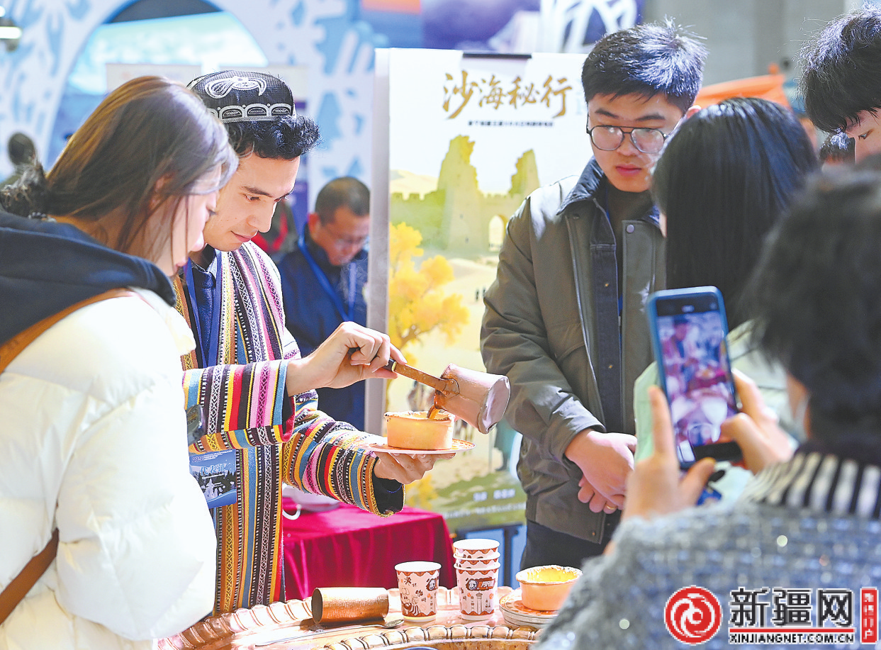 冬博会乌鲁木齐展馆,现场制作的“沙煮咖啡”和“馕咖啡”吸引众多观众驻足品尝。
