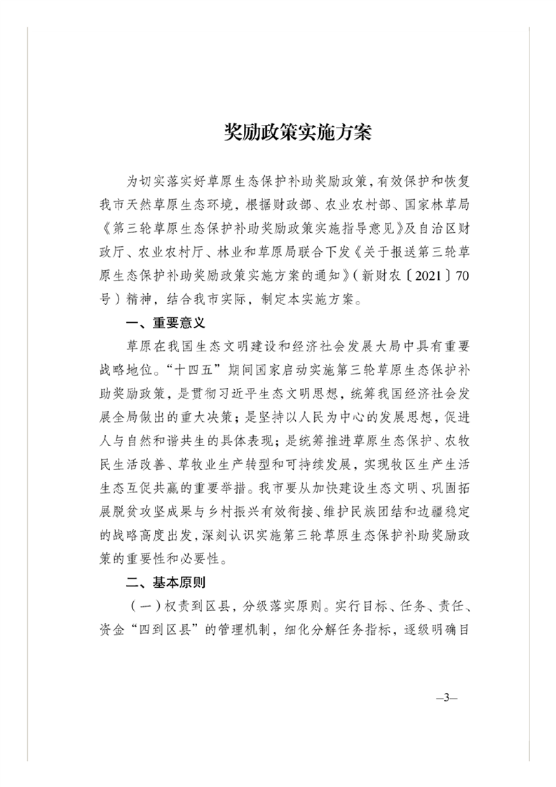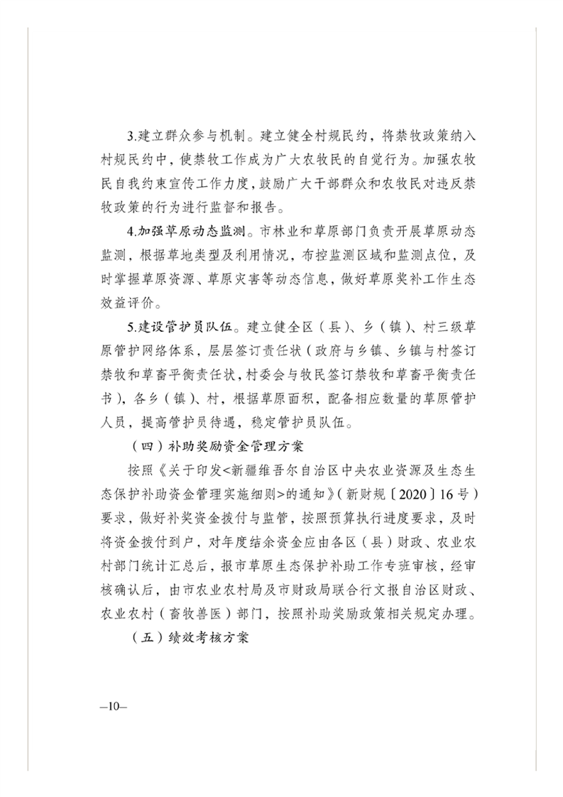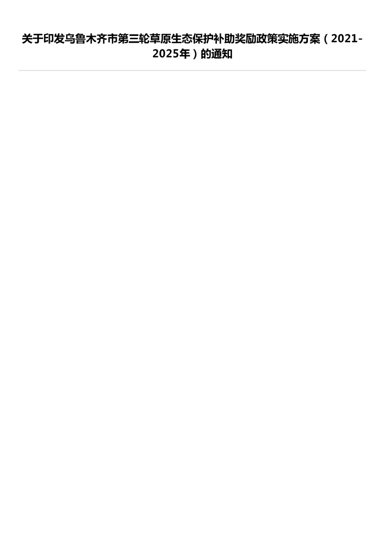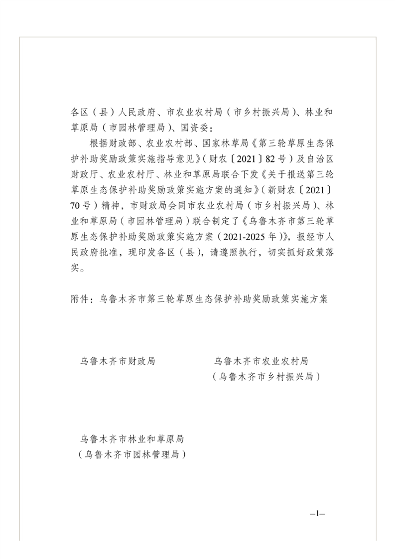 关于印发乌鲁木齐市第三轮草原生态保护补助奖励政策实施方案(2021-2025年)的通知
