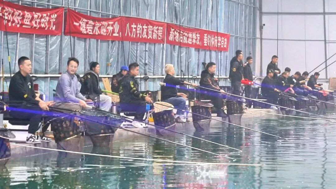 11月20日,馆内的大型恒温钓池碧波荡漾,数十位垂钓爱好者正专注凝视池面浮标,享受着春日般的垂钓之乐。