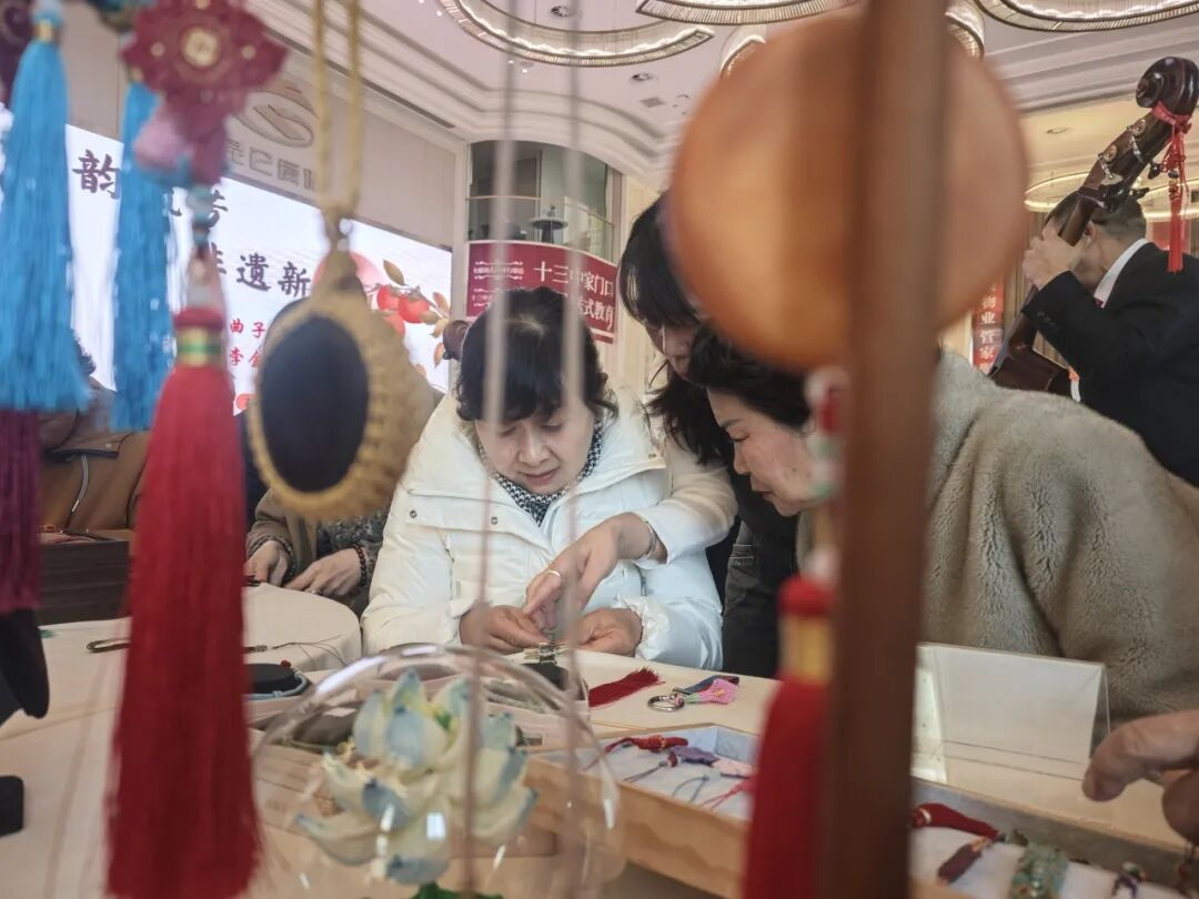 最受居民欢迎的当属非遗体验专区。多位非遗代表性传承人亲临现场,带来绳结技艺、花饽饽、面塑、糖画等非遗项目的展示与教学。