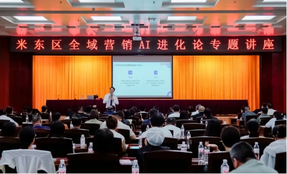 (米东区融媒体中心记者:李洁 沙志浩报道)在当前数字化浪潮下,企业如何做好营销模式的革新与全域整合? 7月15日,米东区举办全域营销AI进化论专题讲座,邀请北京百年明德讲堂特聘AI营销导师于源为全区经济领域党员干部和120多家企业进行授课。重点讲解全域营销的最新趋势与实践策略,帮助解决企业营销的瓶颈问题,促进企业健康发展。米东区委书记张峻祥出席讲座。
