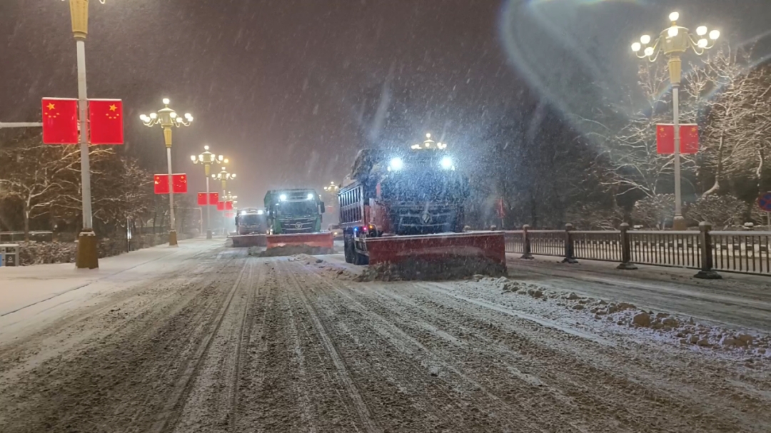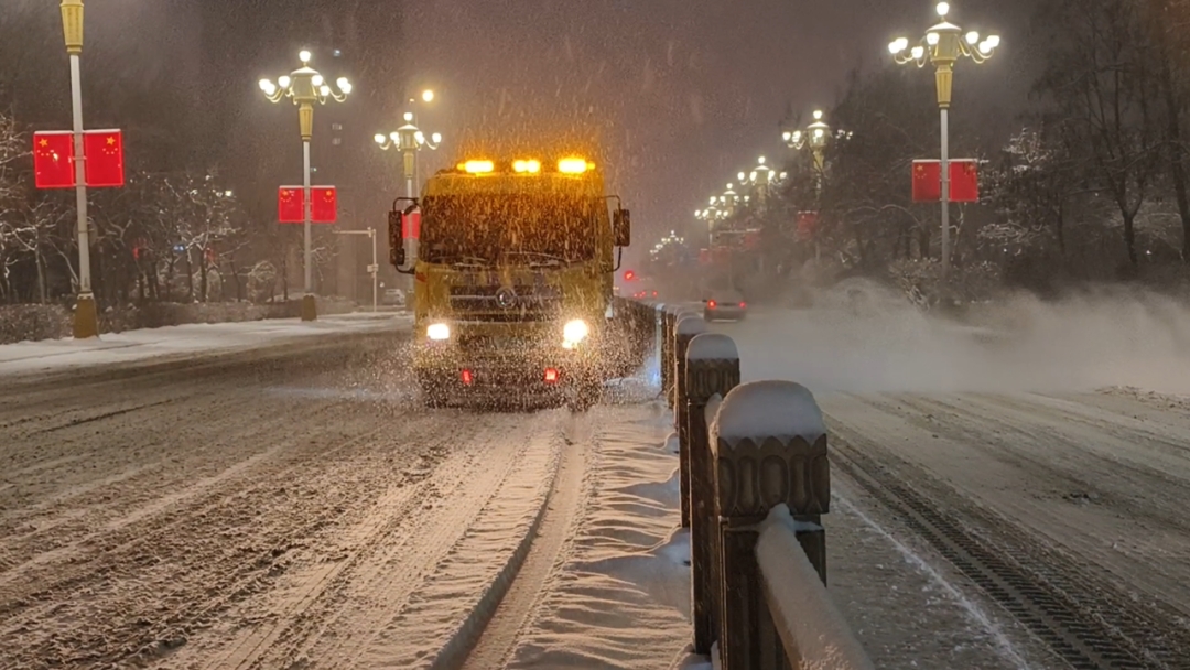 这些来自不同岗位的守护,共同构成雪夜中最坚实的保障。深夜,驱车回家的市民李一舟看到清雪车辆与环卫工人仍在主干道上循环作业。“正是大家的辛苦奉献,让我们能安心在路上、平安到家里。”李一舟说。