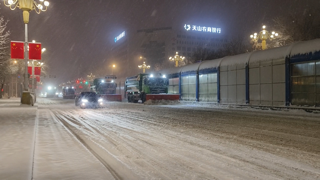 “按照‘即下即清、雪停路净’的要求,我们所有机械和人员都已投入一线。在城区各主要街道,由大型滚刷车、抛雪机等组成的作业梯队,采取‘先主后次、先通后净’的策略循环清扫,背街小巷则配合人工清理,确保‘雪停路净’。”乌鲁木齐佳源美城市服务有限公司总经理王永杰表示,公司负责的约200万平方米区域已全面铺开作业,新购置的除雪设备进一步提升了清雪效率。