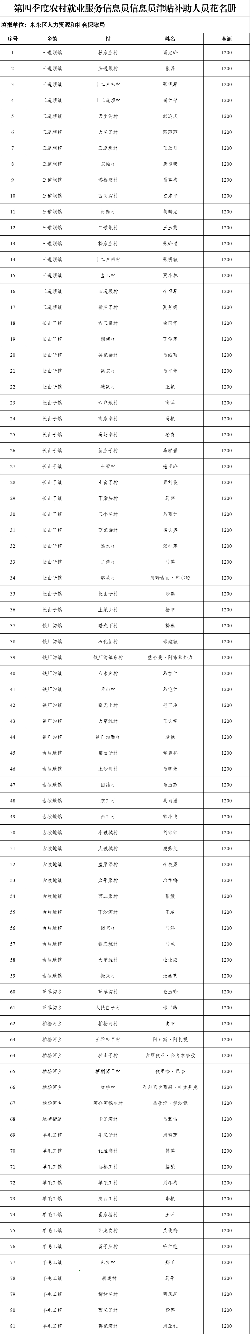 第四季度农村就业服务信息员信息员津贴补助人员花名册