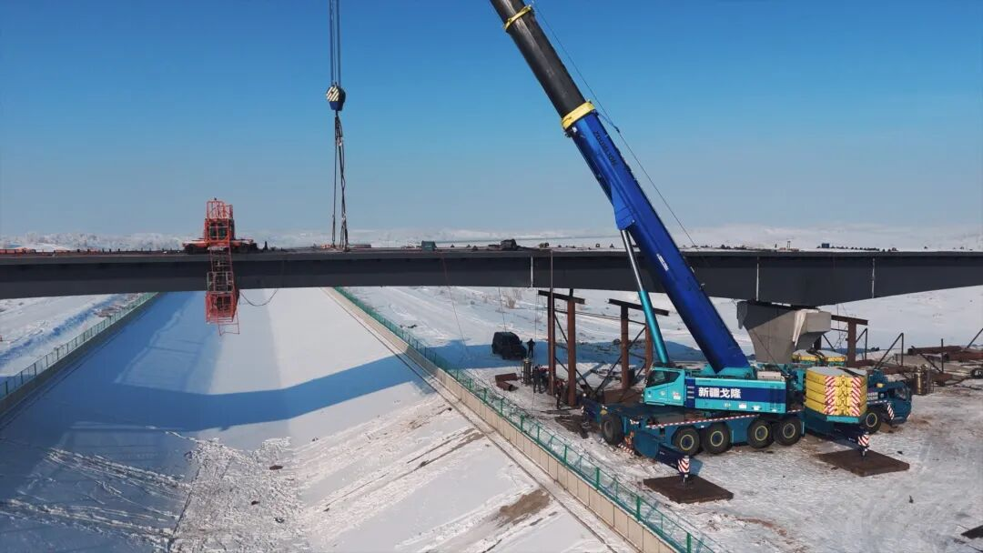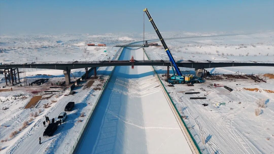 然而,在荒漠深处架起这座“长虹”绝非易事,施工团队面临无水无电、通讯不畅、冬季严寒以及跨渠作业等多重挑战。