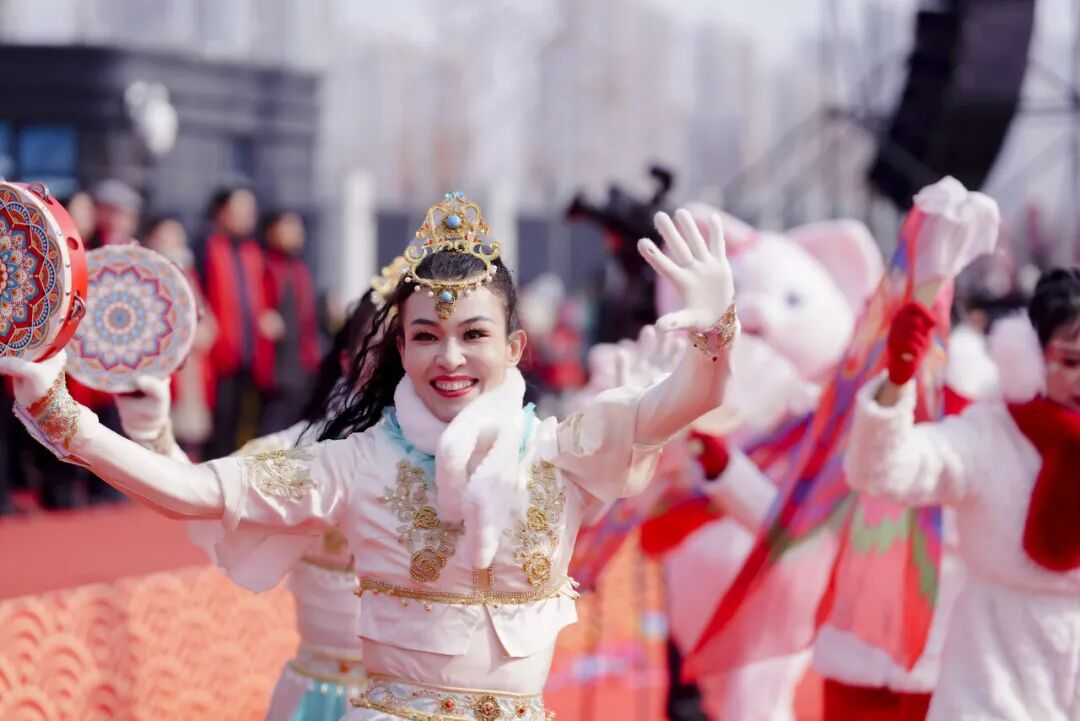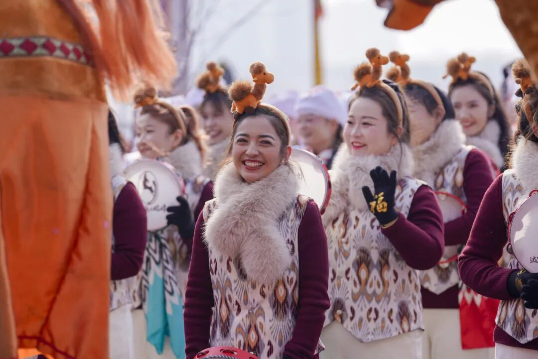 国家级非物质文化遗产新疆“花儿”代表性传承人王秀芳携弟子现场献唱,悠扬曲调伴着鼓点传遍巡游路线,让观众在年味中感受米东文化根脉与产业活力。