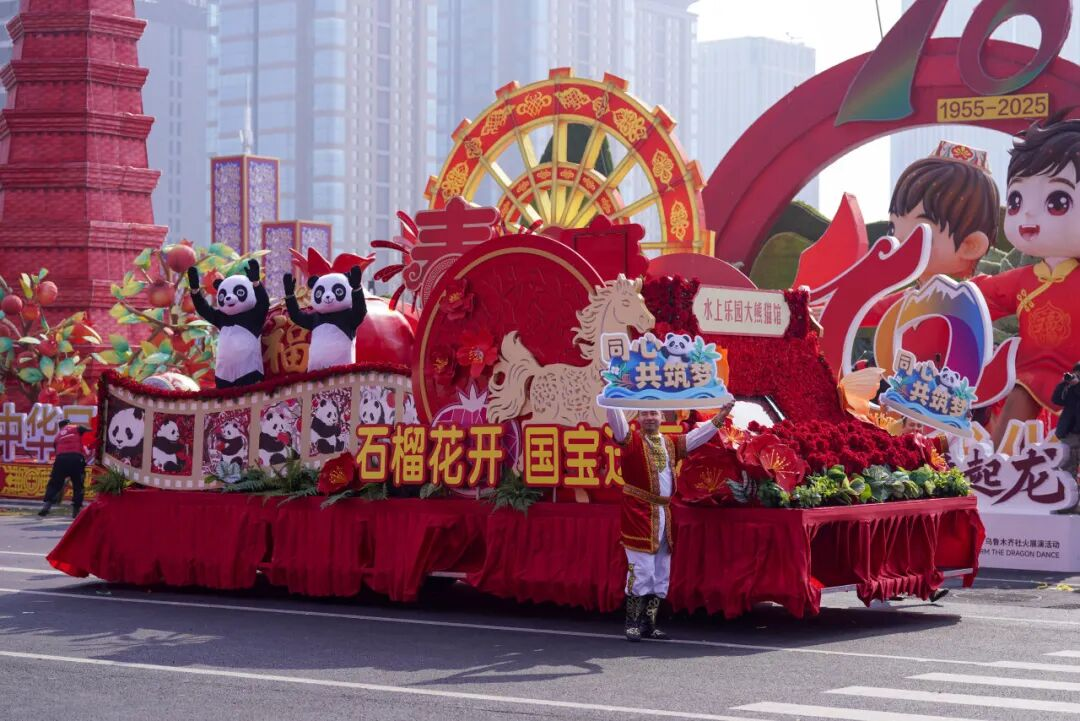 第二届“打起手鼓 舞起龙”乌鲁木齐社火巡游展演创新采用了“社火队伍+主题花车”形式,共有9辆特色花车集中亮相,来自乌鲁木齐市的16支队伍和吐鲁番市、兵团第十三师的2支外请社火队伍共2400多人同台献艺,为市民和游客献上了一场融合传统民俗与现代创意的文化盛宴。