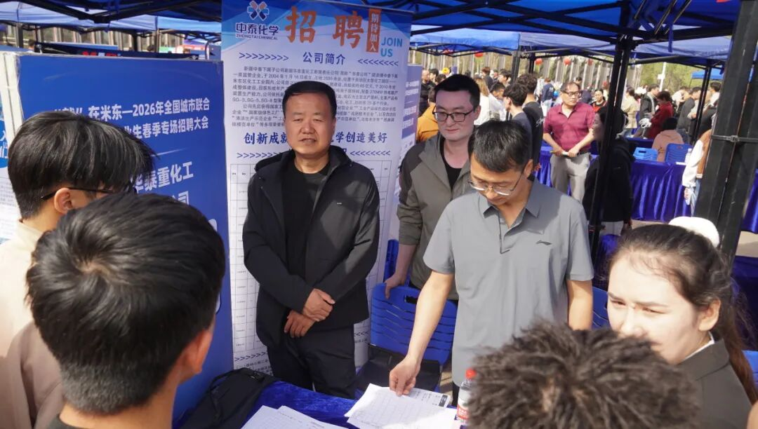 新疆华泰重化工有限责任公司人事部工作人员程晋刚说:感谢政府搭建这么好的平台,一上午我们就收到几十份优质简历。这次我们带来技术、管理、生产等岗位,企业发展急需青年人才,我们会做好培养和保障,让大家留得住、干得好。