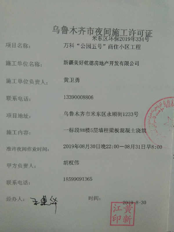 334号新疆美好乾德房地产开发有限公司万科“公园五号”商住小区工程一标段