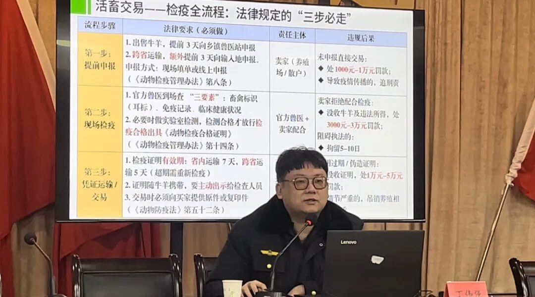 东工村泰达养殖合作社负责人牛虎说:养殖环节的兽药使用、台账记录都关系到畜产品安全和市场信誉。通过宣传,我们更清楚了只有守法养殖、安全养殖,才能让产业走得稳、走得远。