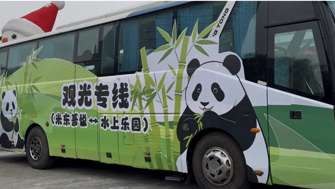 上午11时许,一辆装饰着熊猫元素的“熊猫专线”公交车从米东吾悦广场发车,10元的票价吸引不少市民体验。