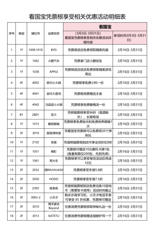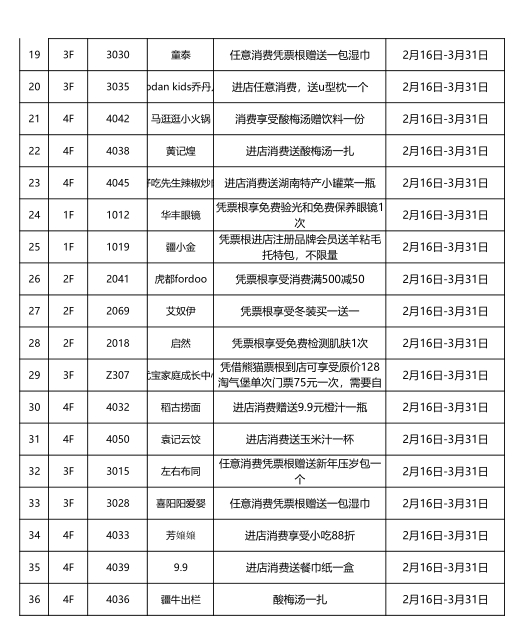 34家商户的优惠覆盖零售、餐饮、娱乐、儿童、生活服务等多个领域:小天才购机8.5折送礼品、览茑超市享96折、戴明眼镜免费验光保养……所有活动持续至3月31日。